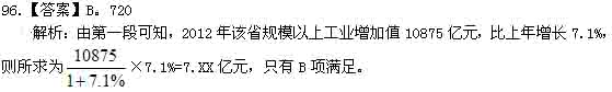 解析:根據文字第二段可知,2012年該省規模以上工業企業主營業務收入同比增長3.5%,比全國低7.5個百分點,則所求為3.5%+7.5%=11%,選D。