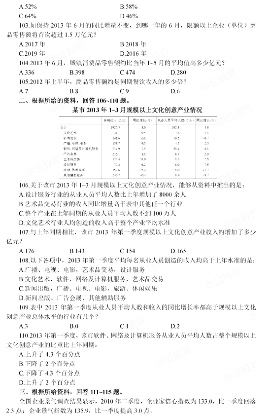 2014年黑龍江省公務(wù)員考試行測(cè)真題:資料分析