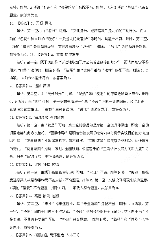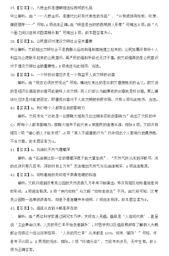 2014年下半年四川省公務員考試行測真題答案:言語理解