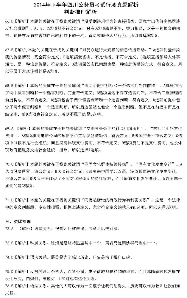 2014年下半年四川省公務員考試行測真題答案:判斷推理