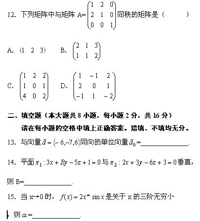 在每小題列出的四個備選項中只有一個是符合題目要求的,請將其代碼填寫在題后的括號內。錯選、多選或未選均無分。