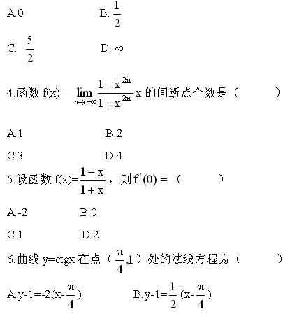 2007年1月高教自學(xué)考試高等數(shù)學(xué)(工本)試題