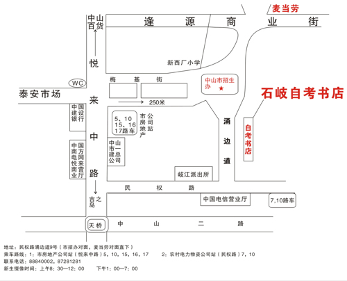 石岐自考書店上班時間:上午8:30-12:00 下午1:00-7:00