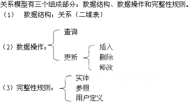 關(guān)系模型基本上遵循數(shù)據(jù)庫的三級體系結(jié)構(gòu)。概念模式是關(guān)系模式的集合,外模式是關(guān)系子模式的集合,內(nèi)模式是存儲模式的集合。