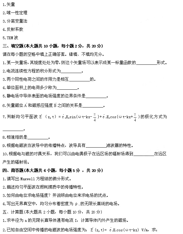電磁場(chǎng)與微波技術(shù)基礎(chǔ)試題