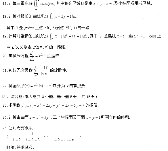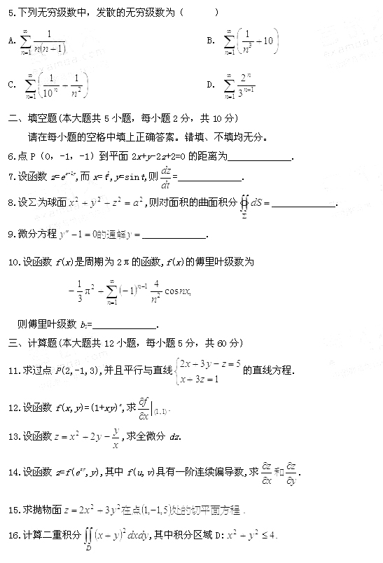 2011年1月自學考試高等數學(工本)試題