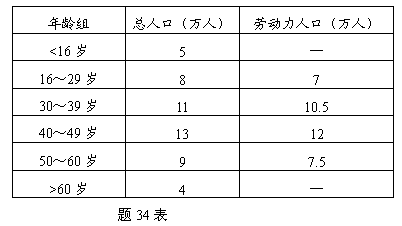 34.根據(jù)題34表中所提供的某地區(qū)數(shù)據(jù)資料計算。