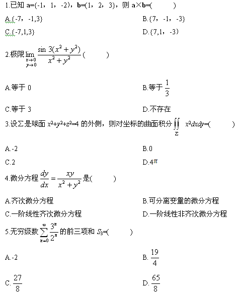 高等數學(工本)試題