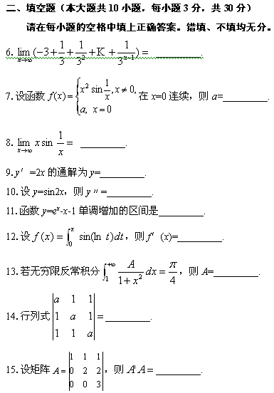高等數(shù)學(xué)(工專)試題