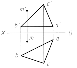 2.用換面法求點M到平面ABC的距離,并作出該距離的V、H兩面投影。