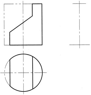 3.畫出圓柱被平面截切后的側面投影。