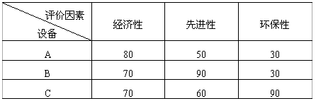 32.某鋼鐵企業進行技術改造和更新關鍵設備,現市場上有A、B、C三種設備均可以滿足技改要求。企業為選擇A、B、C中的一種做為技改設備,特采用了綜合評分法,并就設備的經濟性、先進性、環保性三個評價因素設定了權重,分別為0.5、0.3、0.2,具體評分結果見下表: