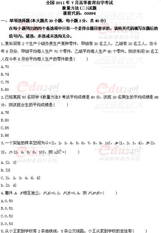 溫馨提示:由于很多試題(主要是主觀題),其答案并不是唯一的,甚至是開放的,一道題的解題思路是多種多樣的,從實施素質教育的要求出發,應該鼓勵自考生用多樣的思路解題。正是因為如此,在評卷過程中,往往會根據考生的作答情況,對評分標準進行調整,也正因如此,教育部把國家教育考試靠后的評分標準仍然列為秘密材料。因此教育部不在網上公布答案,請考生諒解。