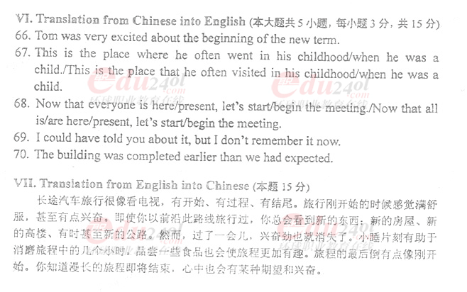 全國2011年4月自學考試英語(一)試題答案