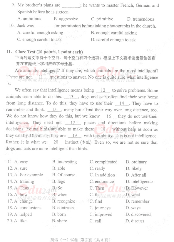 - 2025年10月自考《英語(yǔ)二》選擇、完形填空、寫作真題及答案更新!2025-10-28