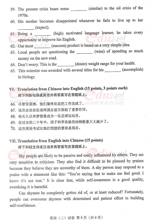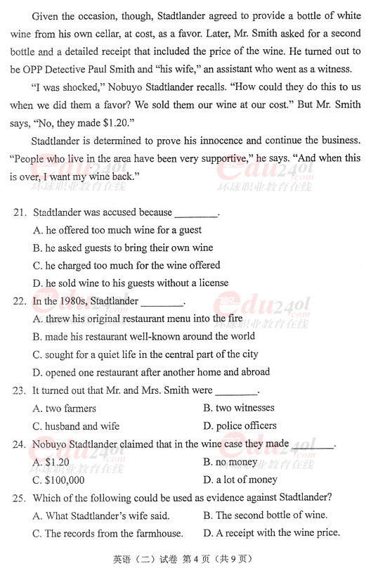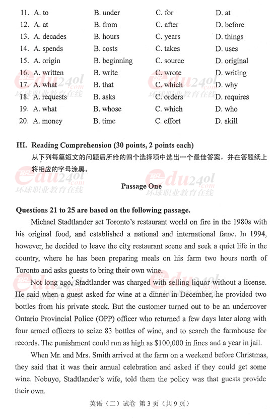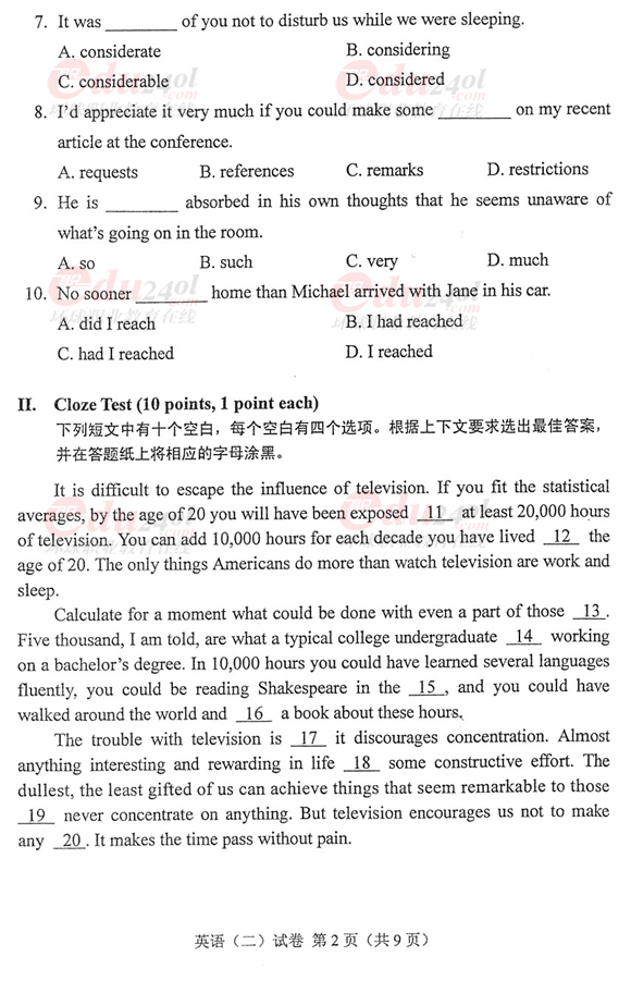 當前位置: 首頁 > 自學考試 > 自學考試歷年試題 > 全國2011年4月自學考試英語(二)試題