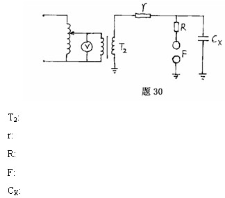 30.如圖為工頻高電壓試驗的基本接線圖,試說明下列元件或設備的名稱及作用。