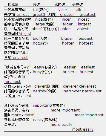 單音節詞和少數雙音節詞,加詞尾-er,-est來構成比較級和最高級。