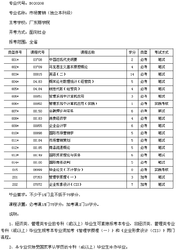 廣東2013年廣東商學(xué)院市場營銷(本科)考試計(jì)劃