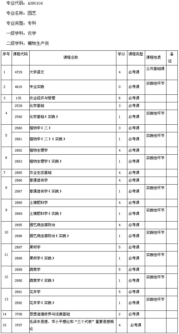 云南省2013年自考園藝(專科)考試計(jì)劃