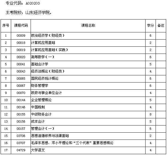 山東省2013年山東經濟學院自考會計(專科)課程設置表