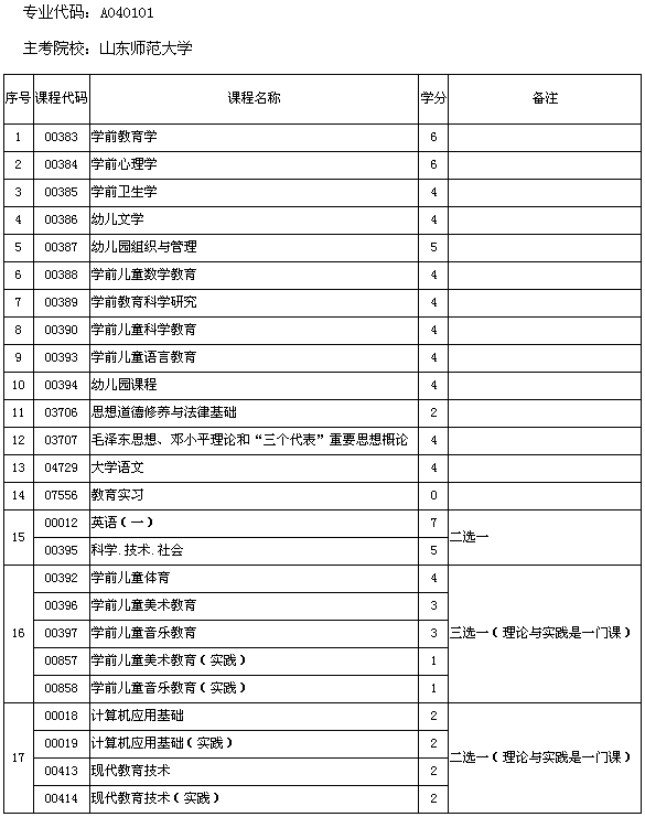山東省2013年山東師范大學自考學前教育專業(yè)(??疲┱n程設置表