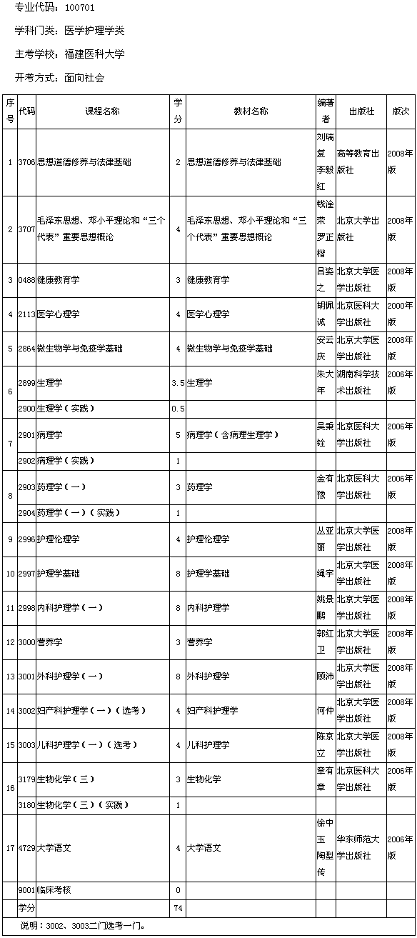 福建省2013年福建醫(yī)科大學(xué)自考護(hù)理學(xué)(專科)考試計(jì)劃