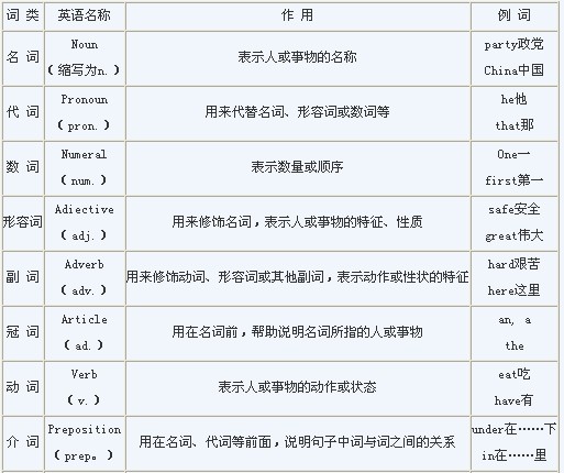 英語中的單詞可以根據(jù)詞義、句法作用和形式特征分為十大詞類: