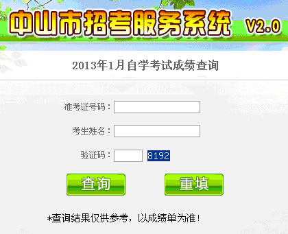 點擊進入》》中山市2013年1月自考成績查詢入口