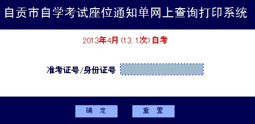 點擊進入>>自貢市2013年4月自考通知單打印入口