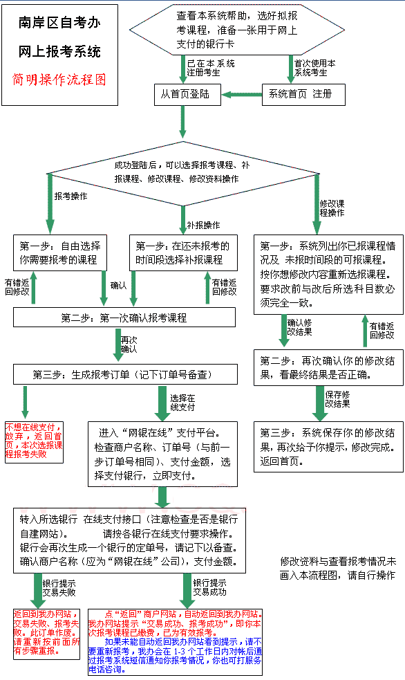 環(huán)球網(wǎng)校小編為大家提供重慶市南岸區(qū)自考報名流程圖,供大家參考之用,詳見下圖。