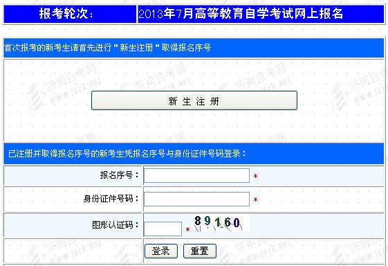 點(diǎn)擊進(jìn)入>>濟(jì)南市2013年7月自考新考生報(bào)名入口