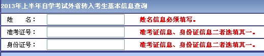 點擊進入>>遼寧省2013年上半年自考外省轉入考生基本信息查詢入口
