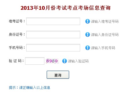 安徽池州市2013年10月自考考點考場信息查詢入口