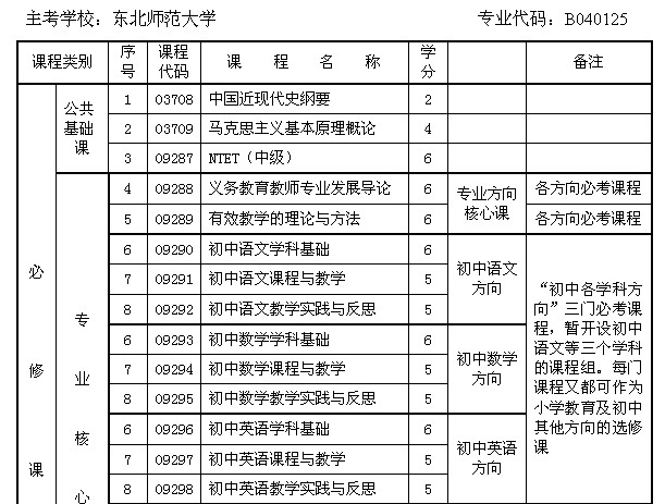 摘要 甘肅省自考義務教育專業(本科)課程設置與學分