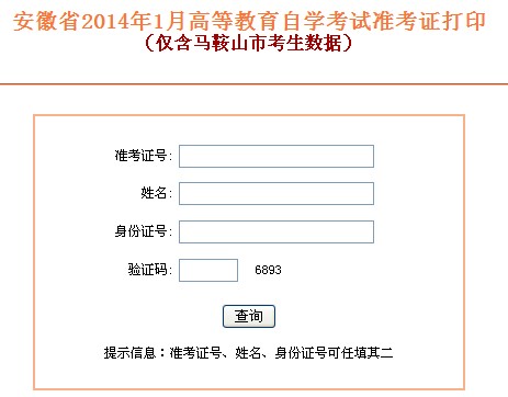 點擊進(jìn)入>>安徽馬鞍山2014年1月自考準(zhǔn)考證打印入口