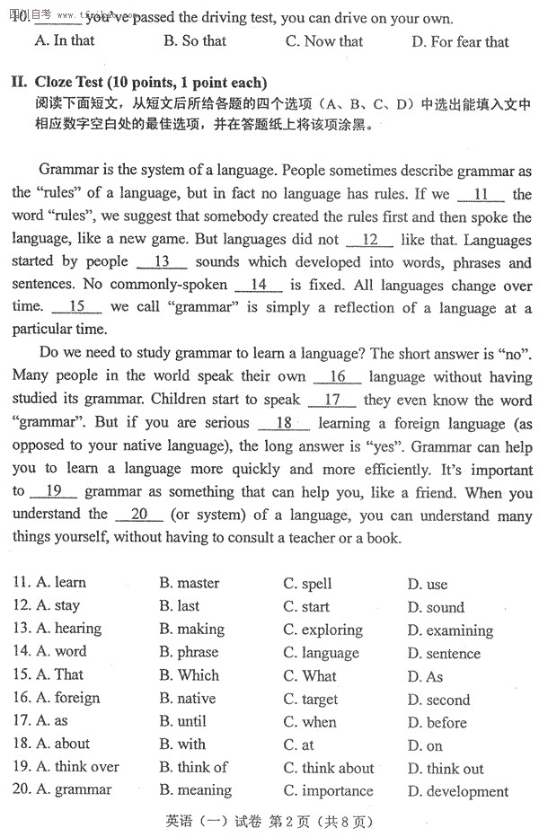 - 2025年10月自考《英語(yǔ)二》選擇、完形填空、寫作真題及答案更新!2025-10-28