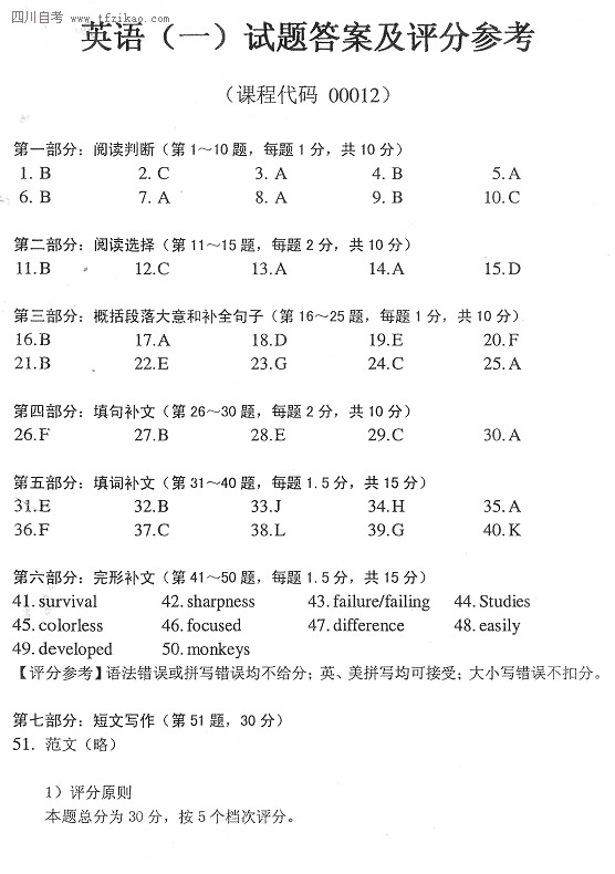 - 更新!2025年10月自考《英語二》答案匯總2025-10-28