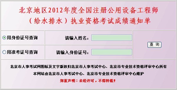 點擊圖片進入北京2012年給排水工程師考試成績查詢入口