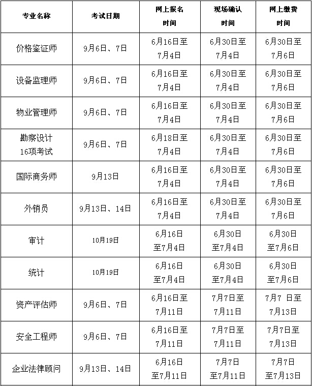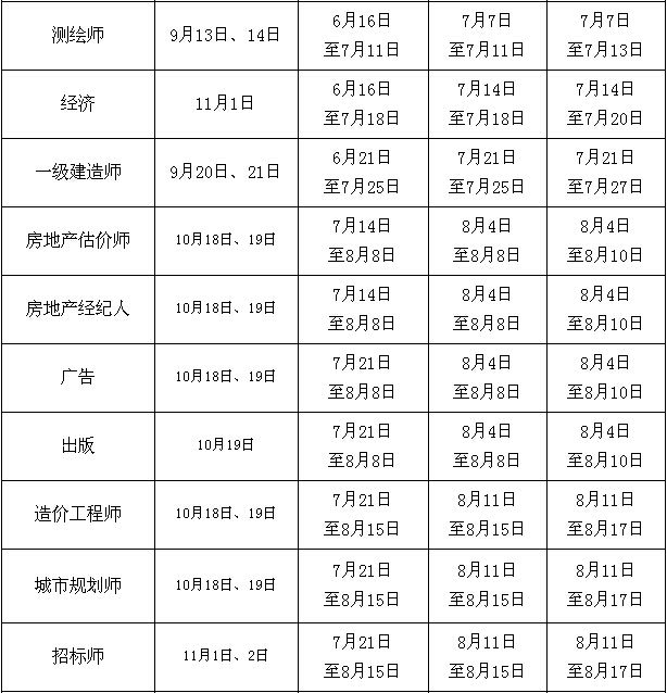 2014年下半年各類專業(yè)技術資格考試報名時間安排