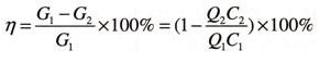 除塵器的全效率是指在同一時間內除塵器捕集的粉塵質量占進入除塵器的粉塵質量的百分數,用η表示。根據除塵效率的定義,除塵效率表示式為: