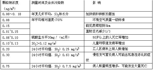 表3-1-3環境空氣中顆粒物濃度及其影響