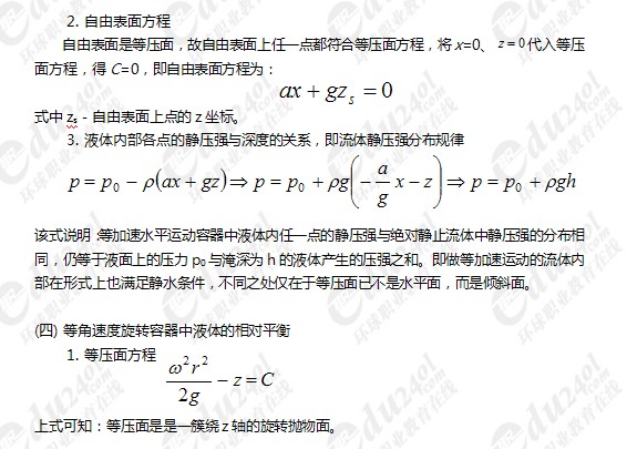 環保工程師:(流體力學)流體靜力學基本方程的應用(6)