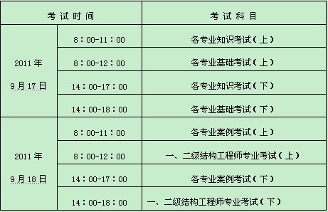 2011年度全國勘察設計注冊工程師執業資格考試考務工作時間安排表.doc