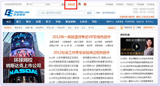 一、找到登錄框(首頁或者課程頻道頁)點擊注冊,如圖所示