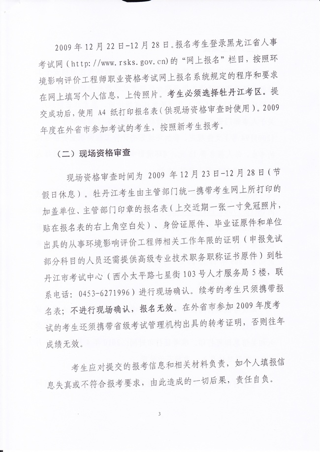 牡丹江2010年環(huán)境影響評價工程師報名時間