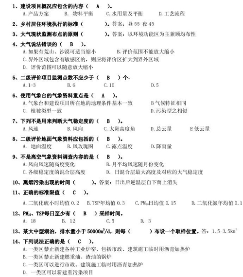 - 2024年環(huán)境評價工程師試題2023-09-15