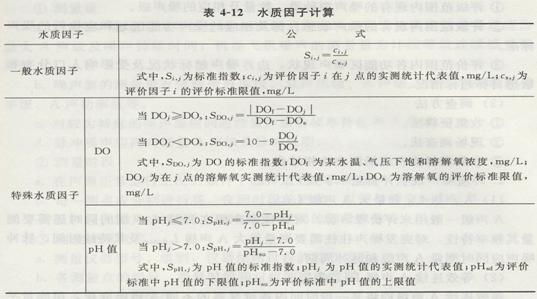 (1)評價方法:單因子指數(shù)法。推薦采用標(biāo)準(zhǔn)指數(shù),計算公式見表4--12