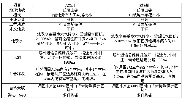 1、為判斷A.B廠址優劣,簡要說明上表哪些項目還要做進一步調查。