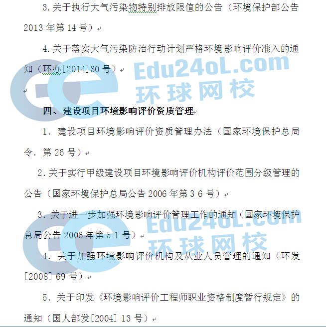 - 2016年環(huán)境影響評價工程師《法律法規(guī)》考試大綱2015-03-18